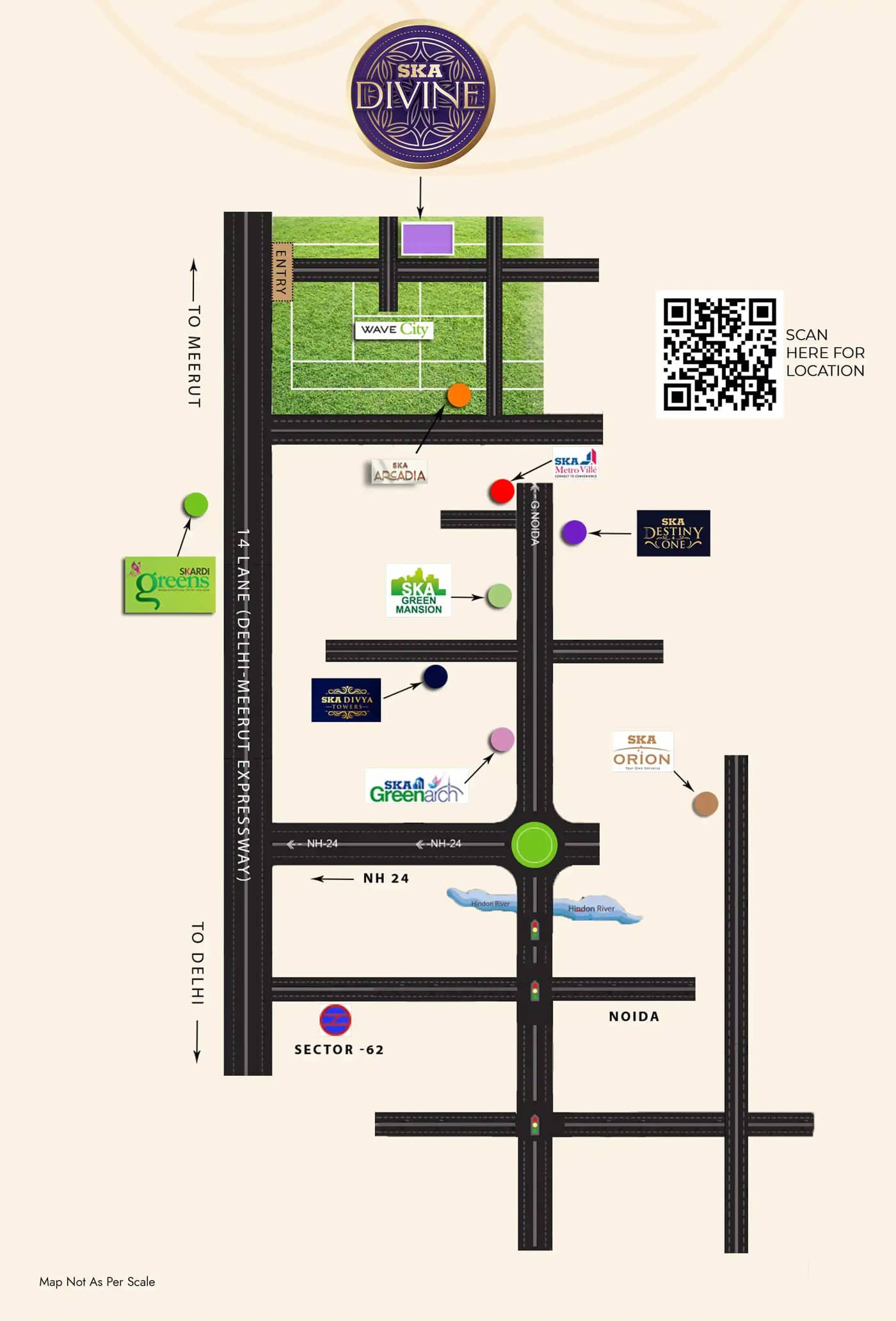 SKA Divine is an upcoming premium residential project by the renowned SKA Group, located in Wave City on NH 24, Ghaziabad. Spanning across 4.95 acres, the project offers a total of 536 thoughtfully designed 3 and 4 BHK apartments spread across three high-rise towers, each rising up to 27 floors. These homes are designed to provide ample space, natural light, and ventilation, along with elegant interiors and smart layouts that cater to modern-day living. The project is RERA registered under UPRERAPRJ556045/10/2024, and the possession is scheduled for August 2029. All key project details such as the floor plan, payment plan, site layout, price list, specifications, and amenities are available in the official brochure for interested buyers. With a convenient and stress-free payment structure, SKA Divine is a promising option for families seeking a blend of comfort, convenience, and value in a growing residential hub.